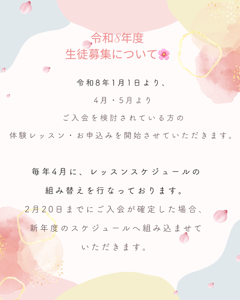 その際、体験レッスン受付可能日、時間のご連絡をさせていただきます。